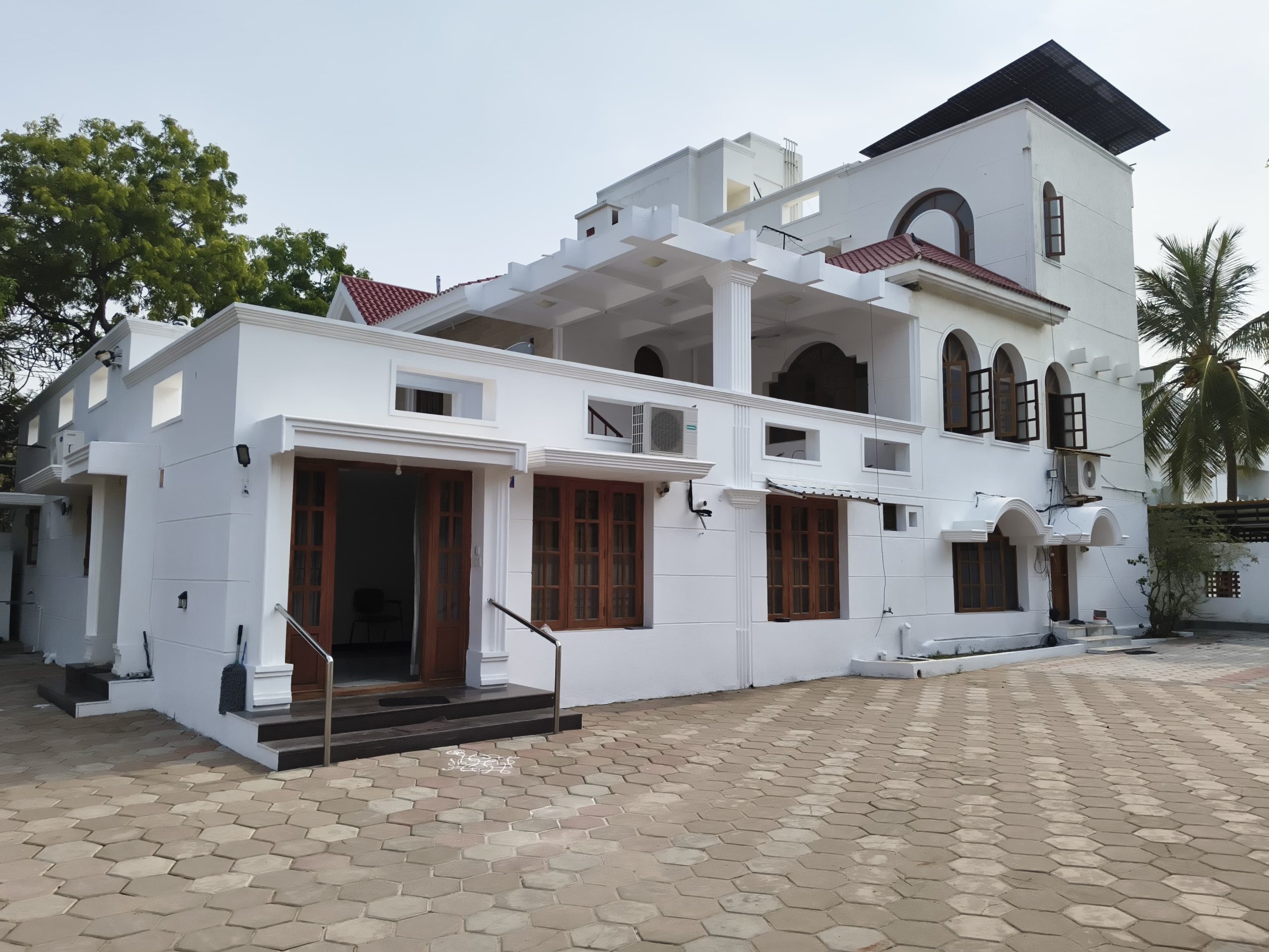 Spacious 2 BHK fully-furnished independent house with 4,000 Sq.Ft. built-up area in ECR, Chennai. Features 3 bathrooms, modular kitchen, AC, 2 covered car parks, staff quarters, sw