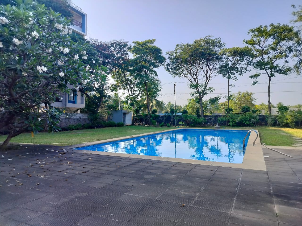 Spacious 4 BHK fully-furnished independent house with 4,000 Sq.Ft. built-up area on 9 grounds in ECR, Chennai. Features 5 bathrooms, modular kitchen, AC, 2 covered car parks, staff quarters, swimming pool, landscaped garden, and clubhouse. East facing—perfect for luxurious family living near ECR.