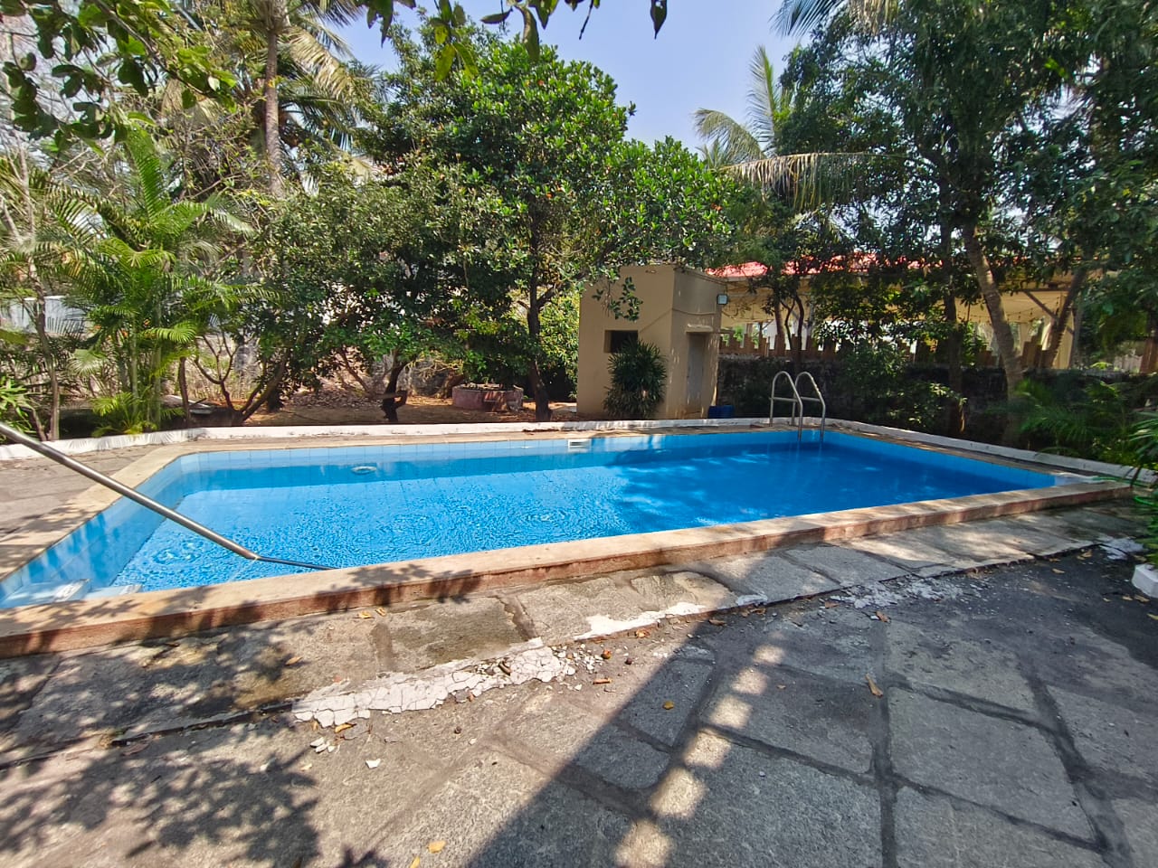 Expansive 5 BHK semi-furnished independent house with 12,500 Sq.Ft. built-up area on 9 grounds in ECR, Chennai. Features 7 bathrooms, modular kitchen, AC, ample car parking, power backup, staff quarters, swimming pool, and landscaped garden. East facing, 10 years old—perfect for ultra-luxurious family living in a prime ECR location.