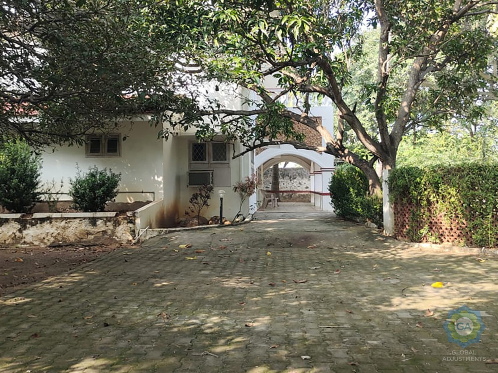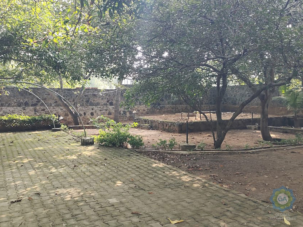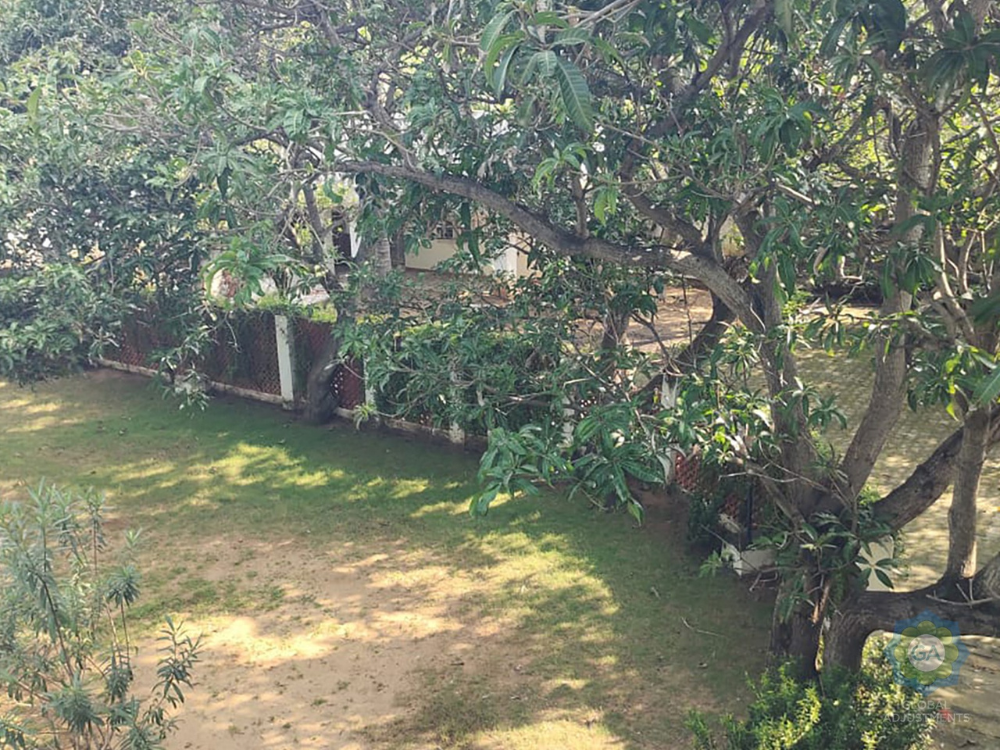 Furnished home with 6,000 Sq.Ft. built-up area on 4.5 grounds of land. Features 4 bedrooms, 2 living rooms, 5 bathrooms, car parking, staff quarters, power backup, swimming pool, g