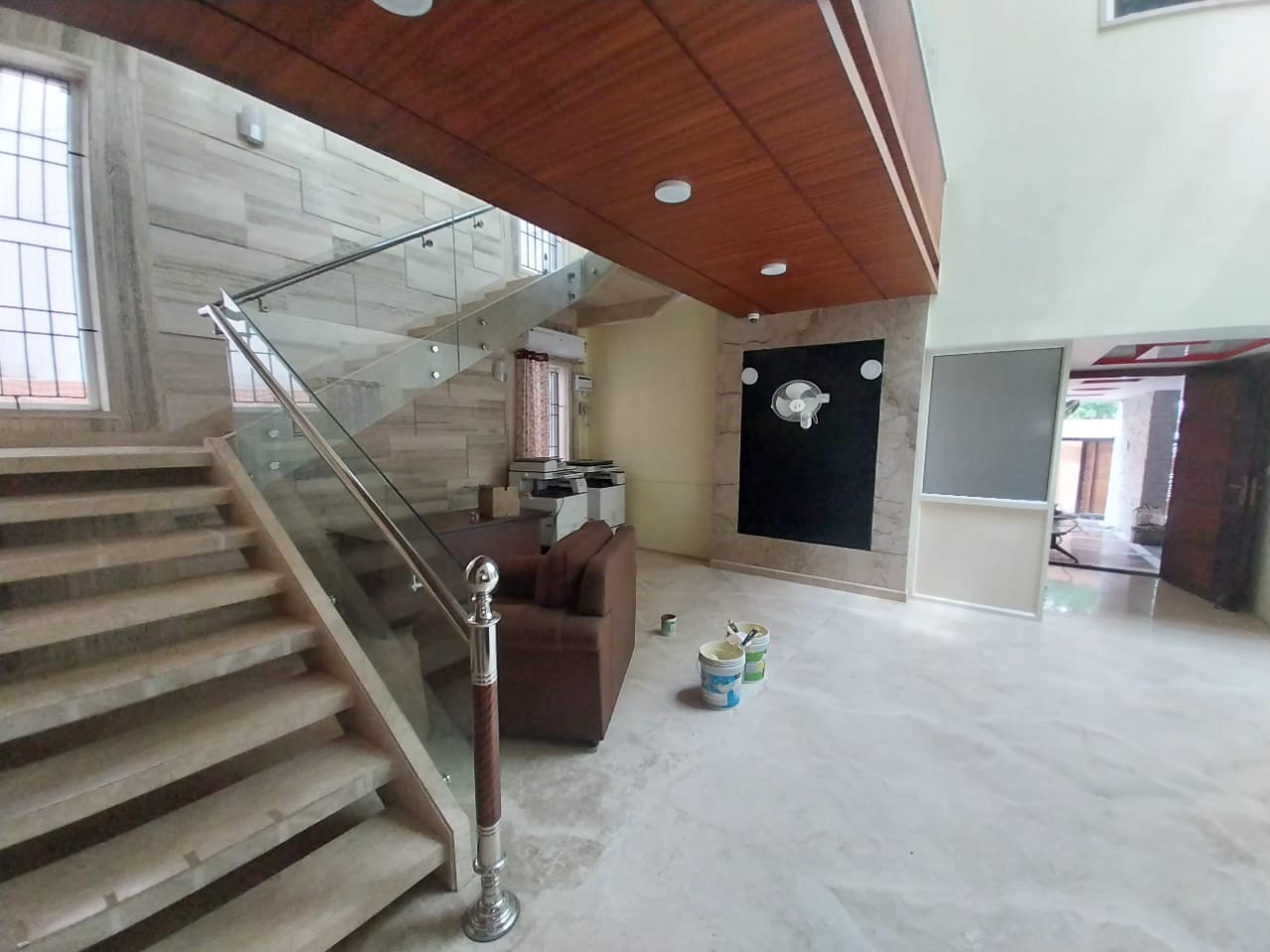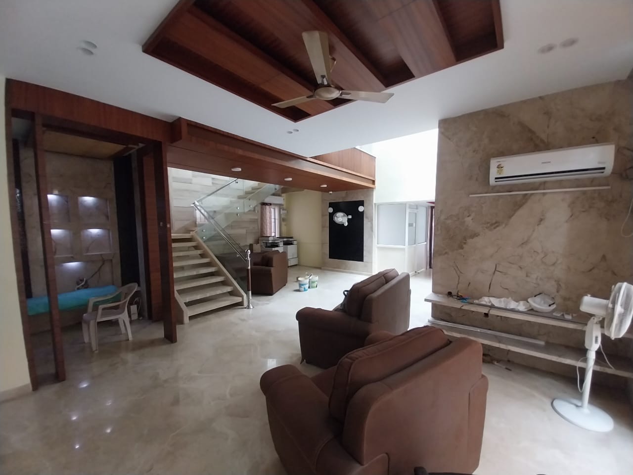 Brand-new, unfurnished 4 BHK house with 5,500 Sq.Ft. built-up area. Features ample car parking, modular kitchen, planned power backup, staff quarters, garden, and a north-facing la