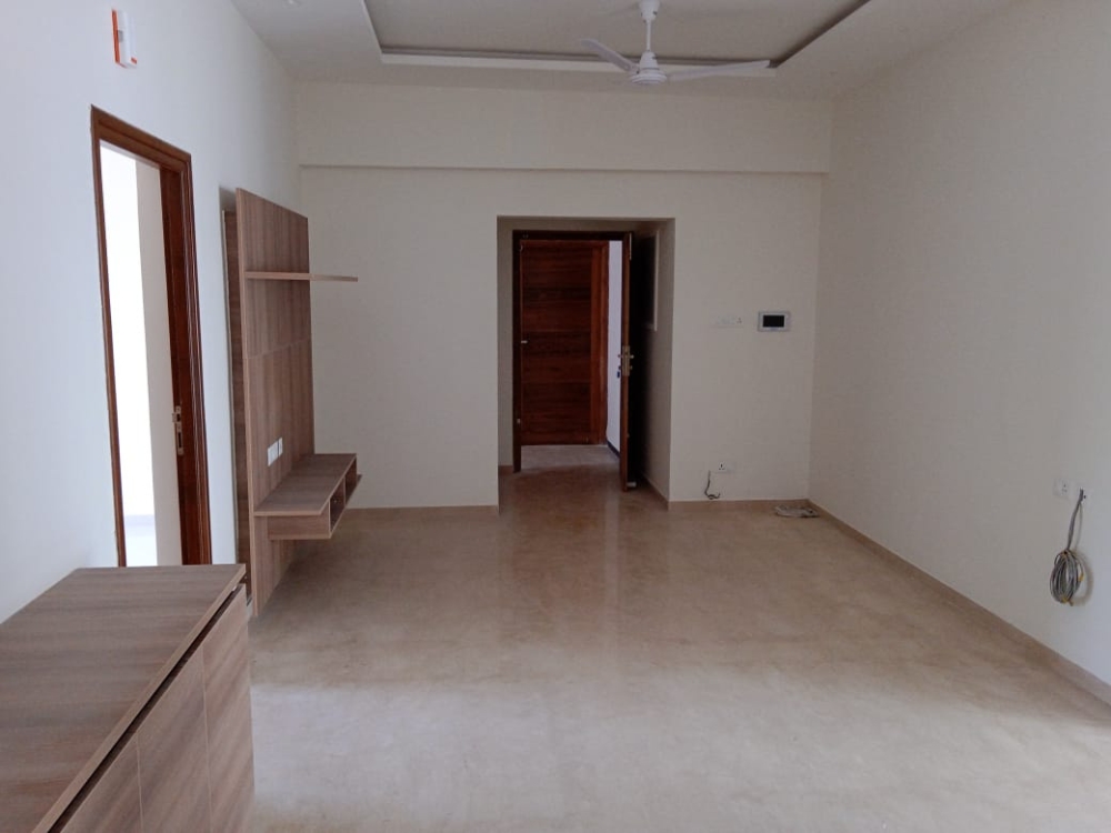 Semi-furnished 3 BHK home with 1,752 Sq.Ft. built-up area, 3 bathrooms, 2 car parks, AC, modular kitchen, lift, garden, and power backup. West-facing and approx. 5 years old — perfect for a peaceful and comfortable family lifestyle.