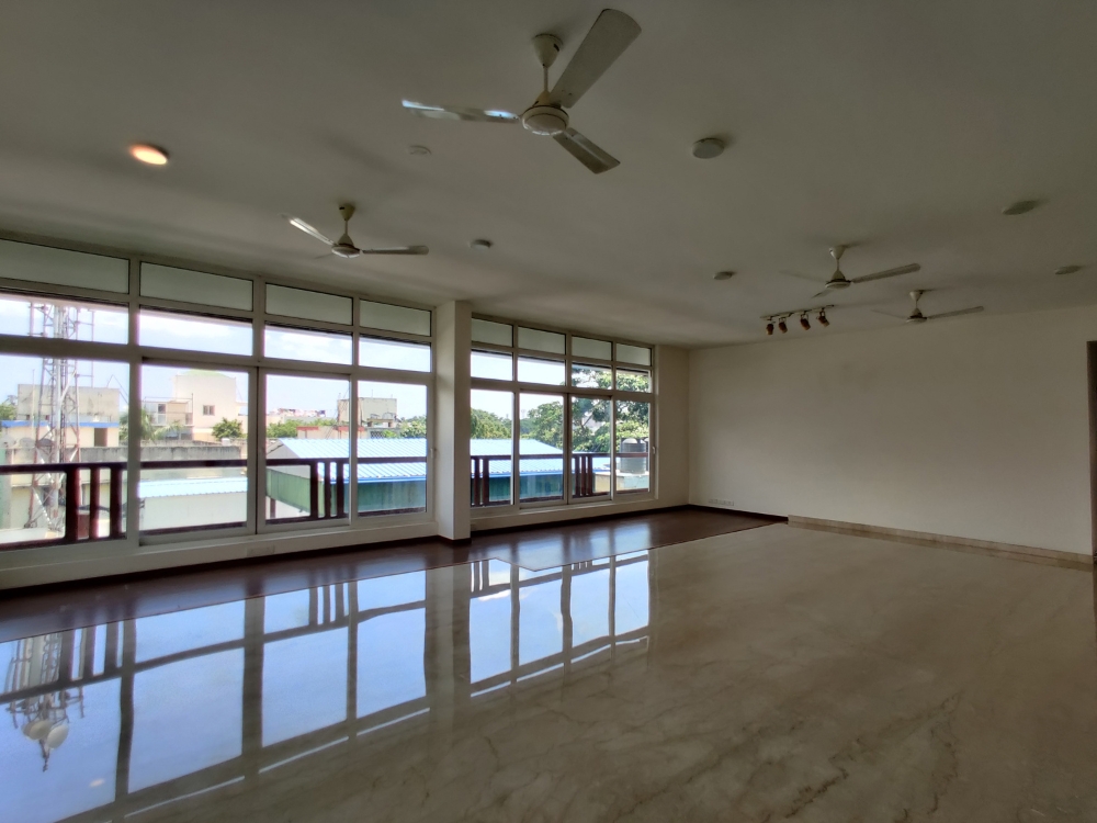 Premium 4 BHK semi-furnished apartment with 4,092 Sq.Ft. built-up area and 2,298 Sq.Ft. UDS. Includes 5 bathrooms, 3 covered car parks, AC, modular kitchen, terrace garden, power backup, lift, and staff quarters. North-facing and approx. 10 years old — designed for comfortable family living.