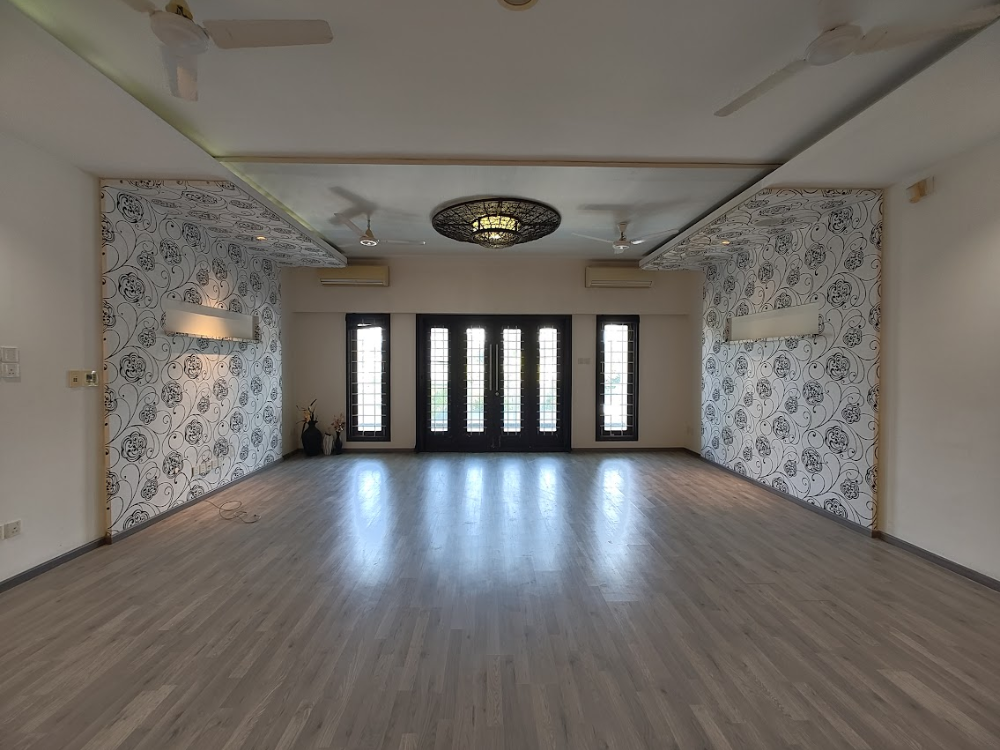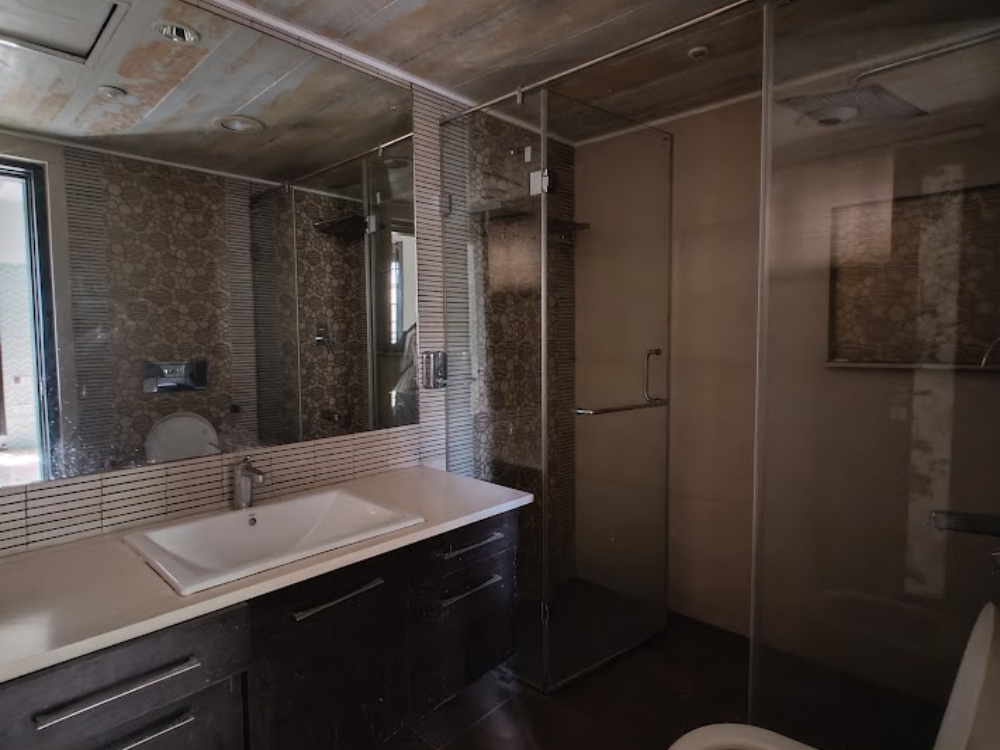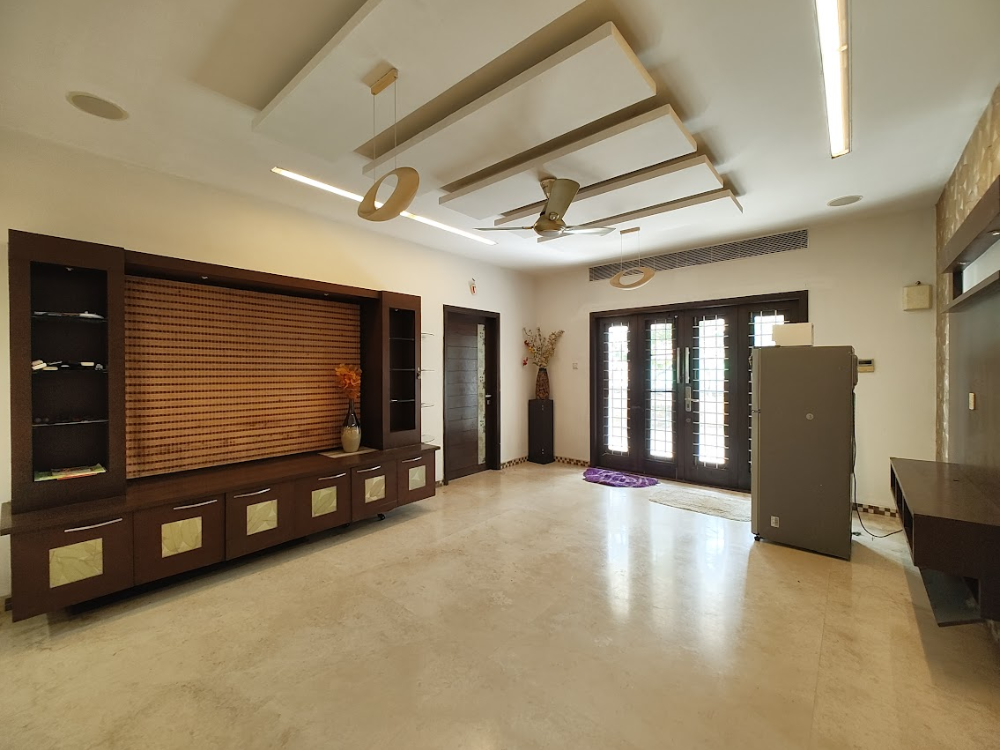 Sprawling 4 BHK home with 8,788 Sq.Ft. built-up area on 11,996 Sq.Ft. land. Semi-furnished with covered car parking, lift, gym, swimming pool with gazebo, servant quarters, and a dog kennel. North-facing, approx. 12 years old — luxury living with privacy.